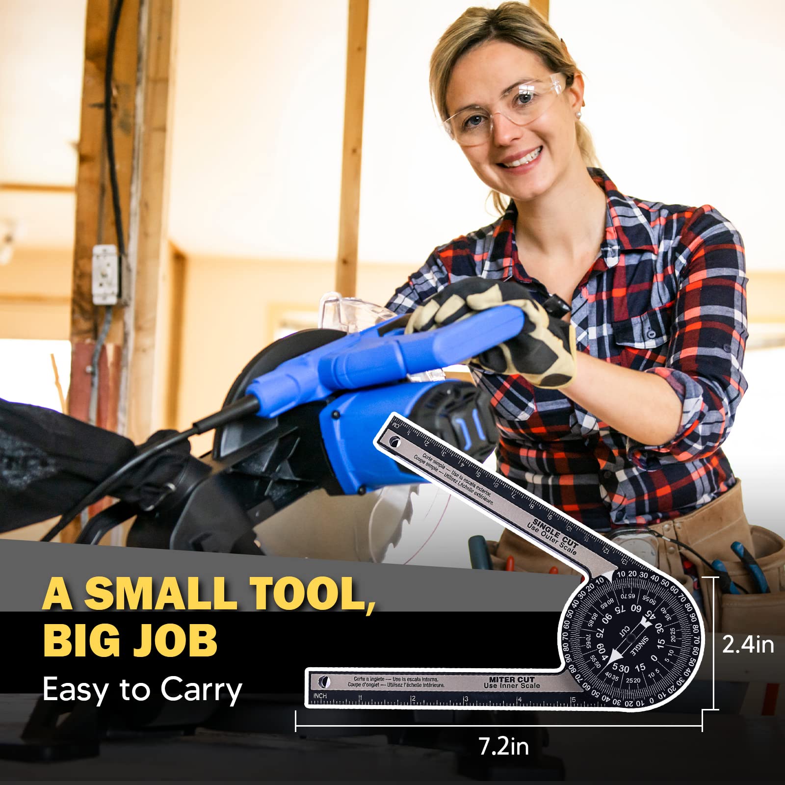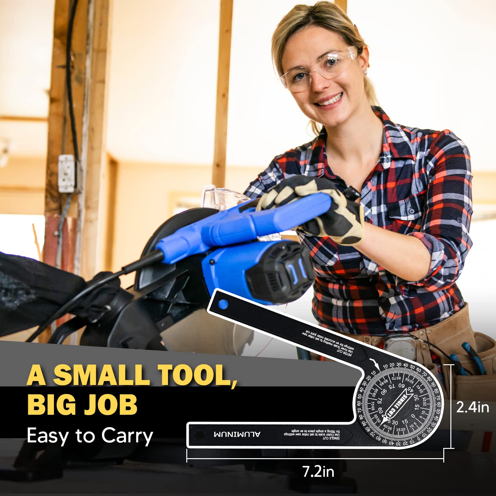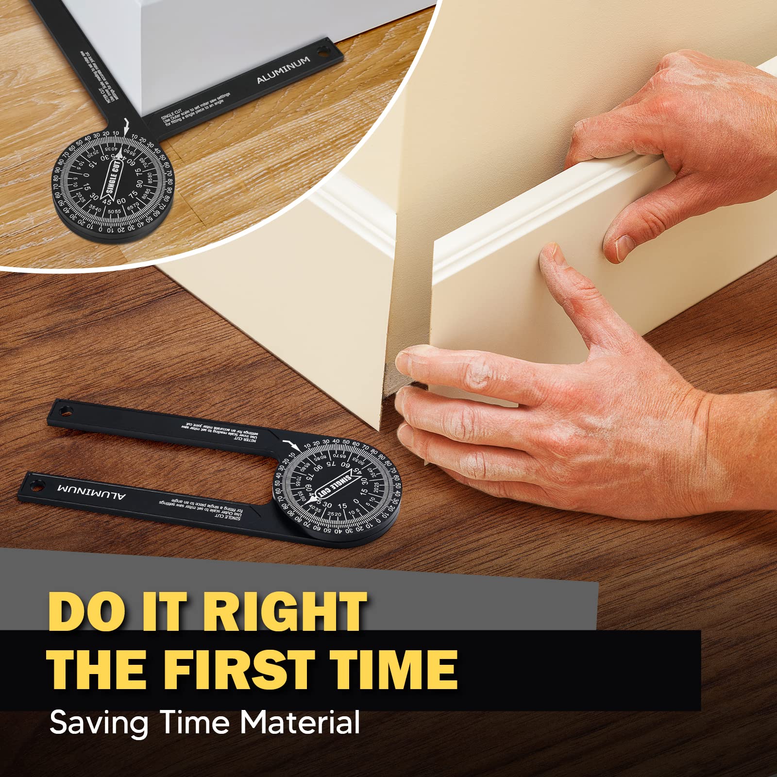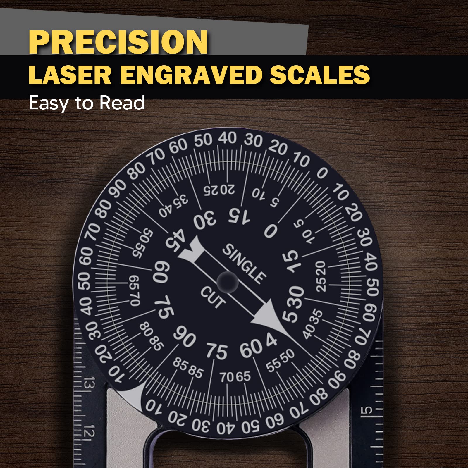 - Simple Protractor Achieve Great Measuring Jobs: Its two scales (miter cut&single cut) can directly transfer your wanted angle to the meter saw. Use the outer scale for taking single cut measurements and the inner scale for miter cut measurements. Miter protractor eliminates calculations, reduces errors, and provides greater accuracy for miter cuts. Whether it’s a inside or outside corner, basic crosscut or bevel/compound cut, this angle measuring tool can help you achieve a clean, precise cut.