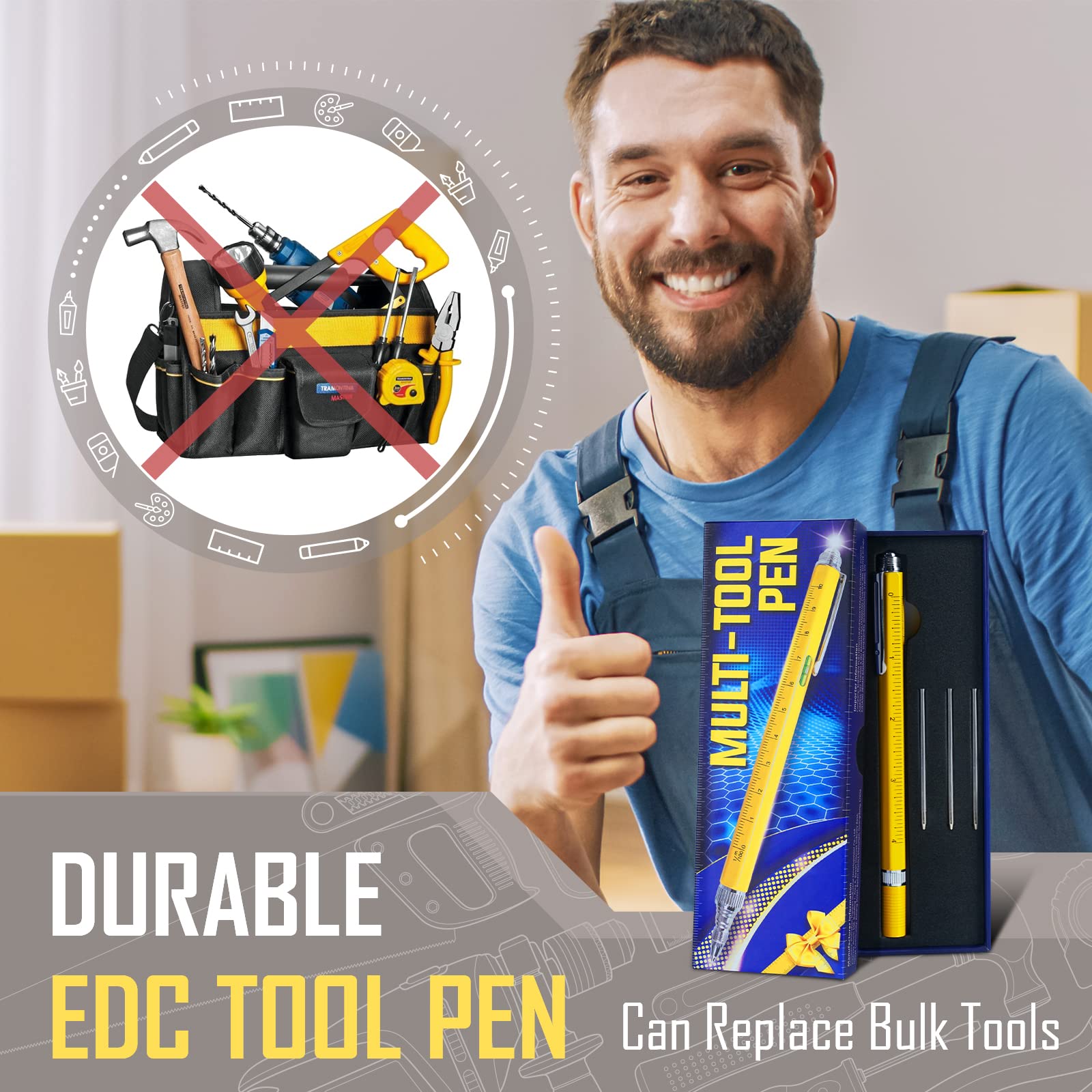 - DURABLE EDC GADGETS WITH BRIGHT LED LIGHT & BUBBLE LEVEL: Our pocket multitool pen with a brighter LED flashlight light to help you improve efficiency in the dark. So good for various repairing work, DIY home improvement, construction, inspection, emergency, reading. This cool tool pen for men built-in spirit level, it keeps everything around you parallel. Like keep photos, drawings, or carpentry projects. So the construction multitool pen is a cool gadget essential gift for your life and work.