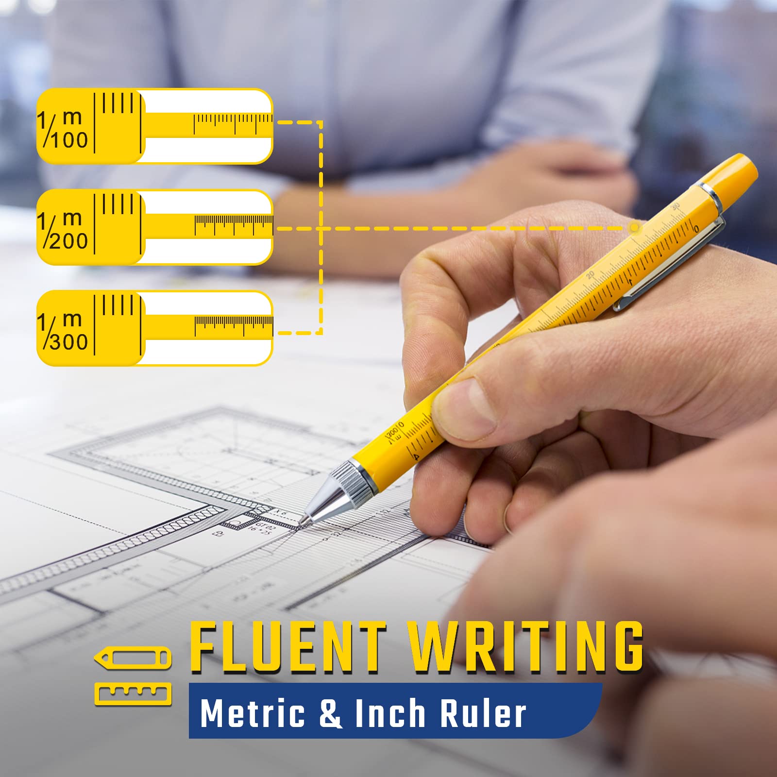 - 2022 CREATIVE DESIGN 6 IN 1 MULTITOOL POCKET PEN: SOOFUN multifunction tool pen comes with 6 handy functions and has a unique patent design. The EDC ballpoint tool pen with two extra refills writes smoothly for a remarkable experience and meets the requirements for scales in drawing work. The bright LED light, magnetic head, a ruler with 4 scales(mm/inch), Phillips screwdriver and bubble level can meet your work needs! Like home improvement, construction, electrical, office, repair, DIY, etc.